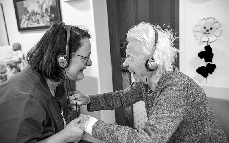 Die Bilder fangen berührende Momente ein: Menschen mit Demenz, die durch Musik wieder in Kontakt treten, reagieren, lächeln oder ganz bei sich sind. Sie machen sichtbar, was wissenschaftliche Studien belegen – dass Musik Zugang schafft, wo Sprache nicht mehr reicht.